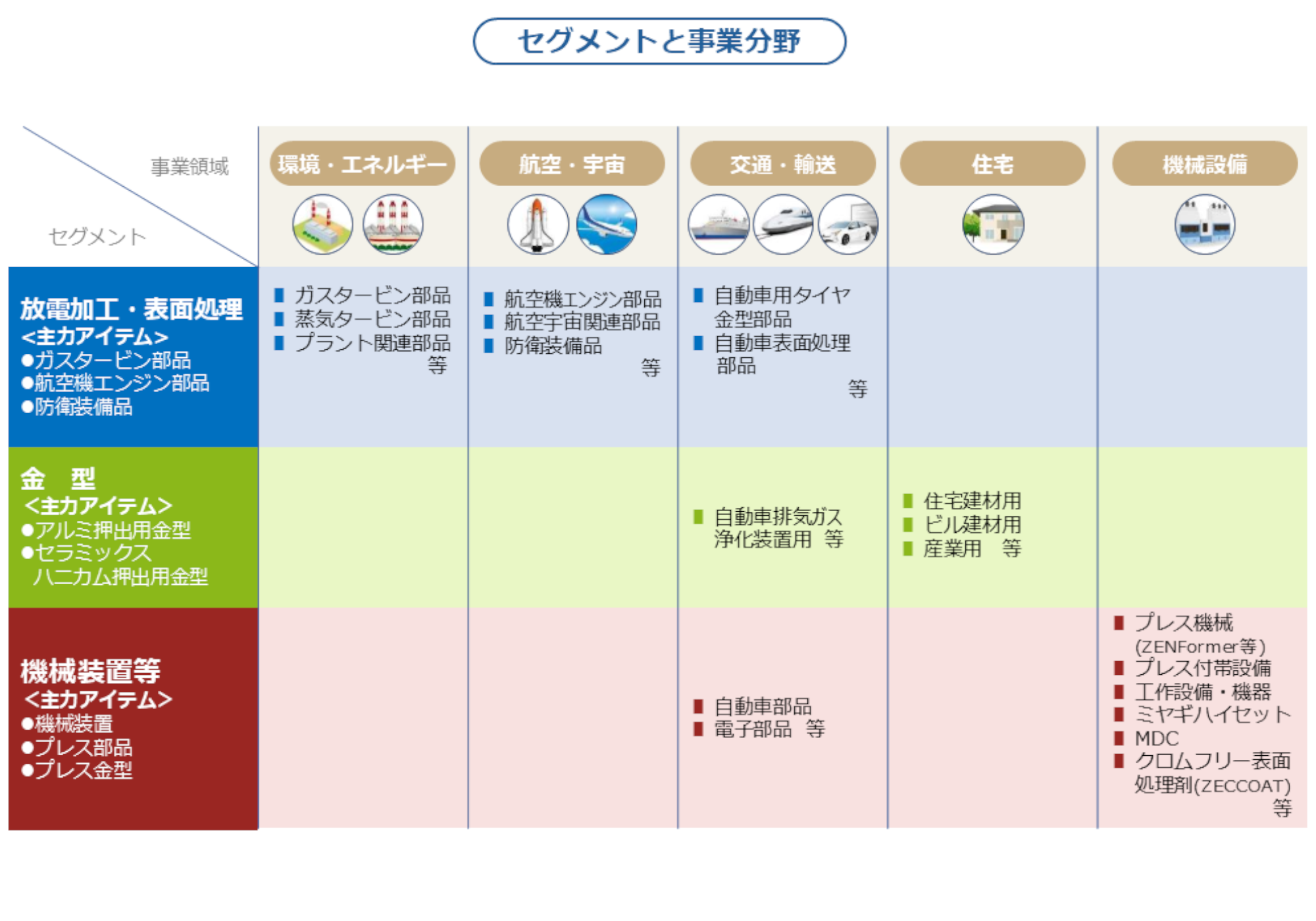 放電加工とは、電気エネルギーを活用した金属などを加工する技術で、当社の祖業であり、ここから多種多様な技術を保有し、他社にはないノウハウからソリューションを提供しています。また、表面処理は、製品の表面を保護する技術で、耐熱性や耐錆性、耐食性に優れたコーティング技術を保有し、加工から表面処理まで一気通貫で行える体制を構築しております。