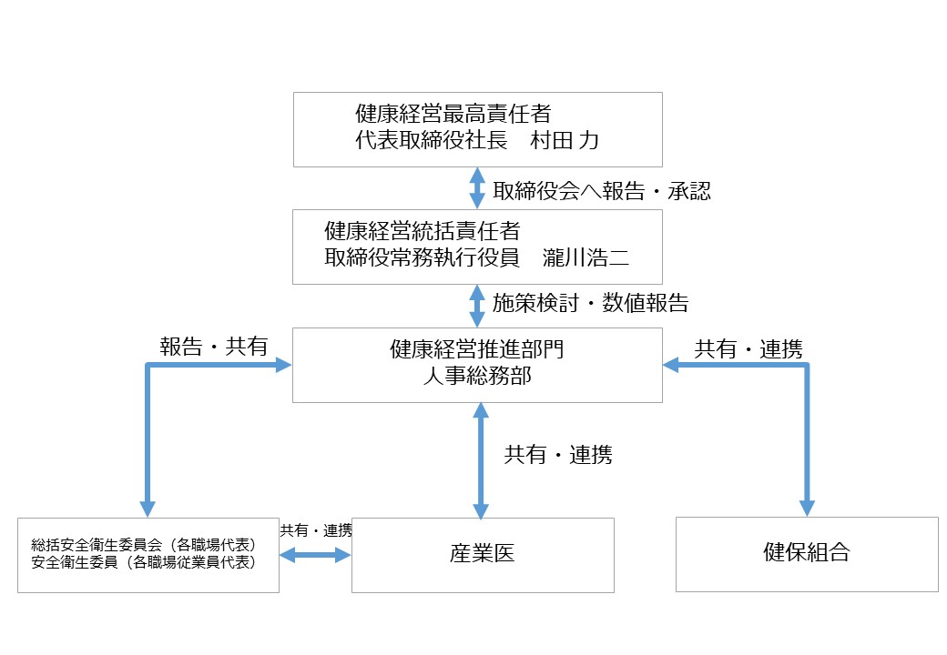 その中核となる従業員が、心身ともに健康で、明るく生き生きと活躍できる職場を作ることを目的として『健康経営』に取り組む事を宣言します。